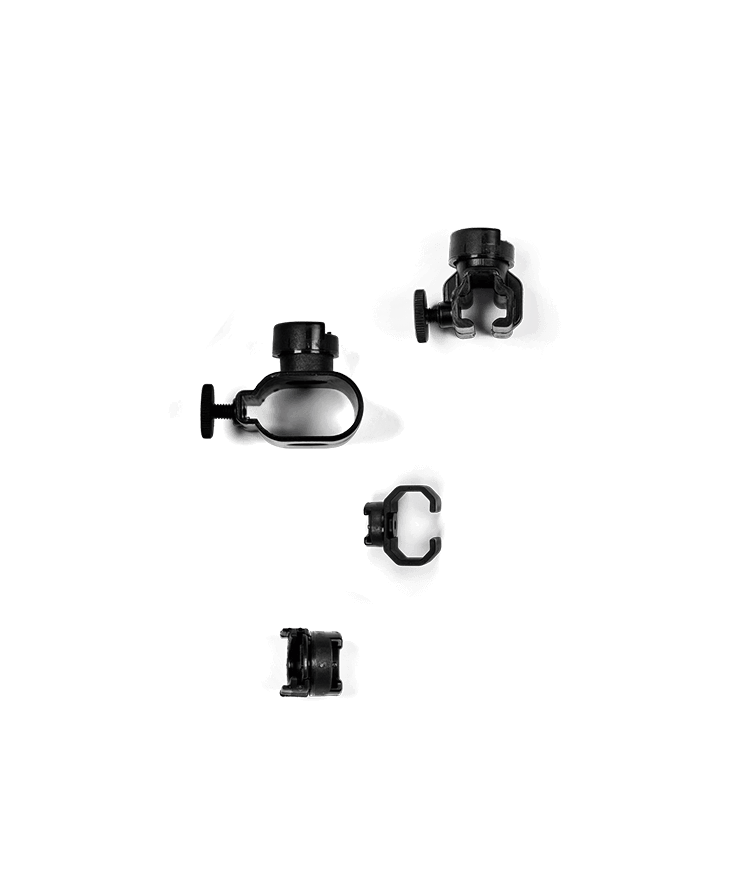 Universal adapters for left- or right-side torch attachment for perfectly positioned lighting in every situation. All torch holders allow the angle of the torch to be adjusted.